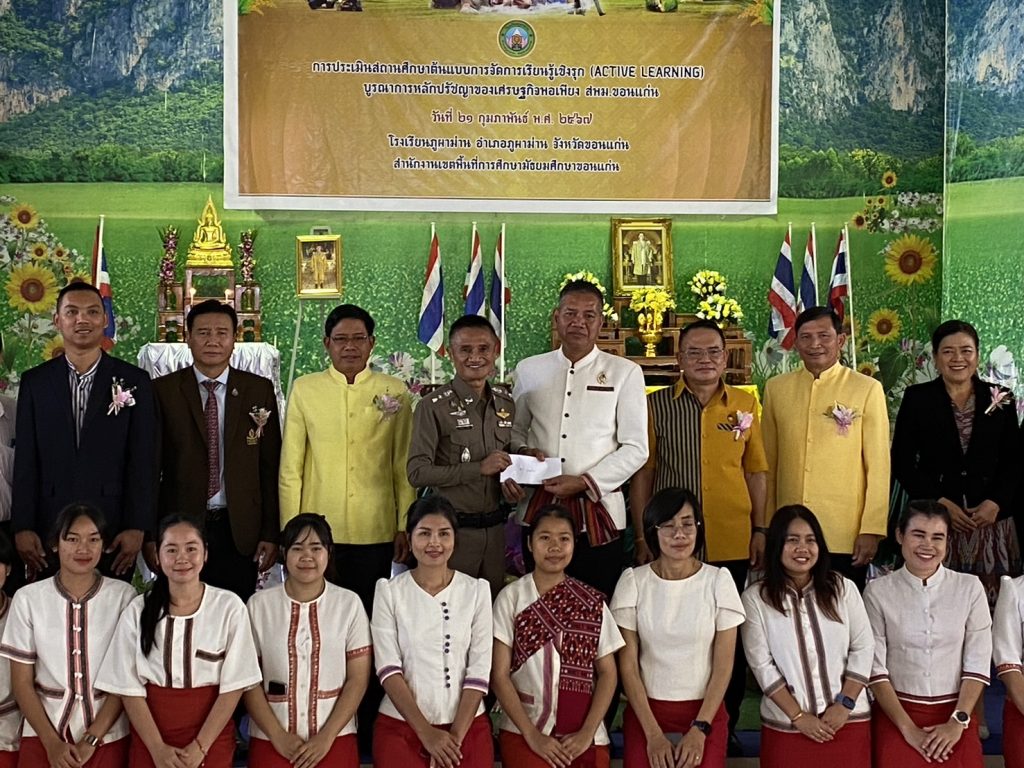 พ.ต.อ.เสกสิทธ ทวีชัย ผกก.สภ.ภูผาม่าน ร่วมการประเมินศูนย์การเรียนรู้ตามหลักปรัชญาของเศรษฐกิจพอเพียง พร้อมมอบทุนการศึกษา ให้กับ ผอ.โรงเรียนภูผาม่าน ณ หอประชุมโรงเรียนภูผาม่าน