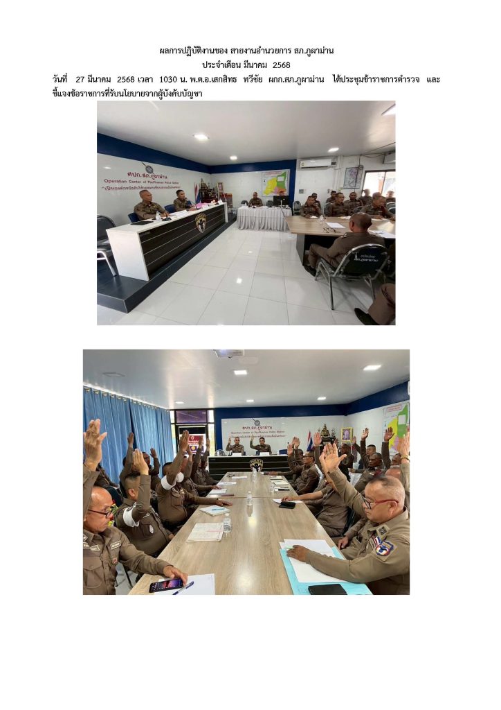 วันที่ 27 มีนาคม 2568 เวลา 10.00 น. พ.ต.อ.เสกสิทธ ทวีชัย ผกก.สภ.ภูผาม่าน ประชุมติดตามและขับเคลื่อนการดำเนินงาน การประเมินคุณธรรมและความโปร่งใสในการดำเนินงานของหน่วยงานภาครัฐ(TTA) 27 มีนาคม 2025 โดย admin / ข่าวภารกิจผู้บังคับบัญชา
