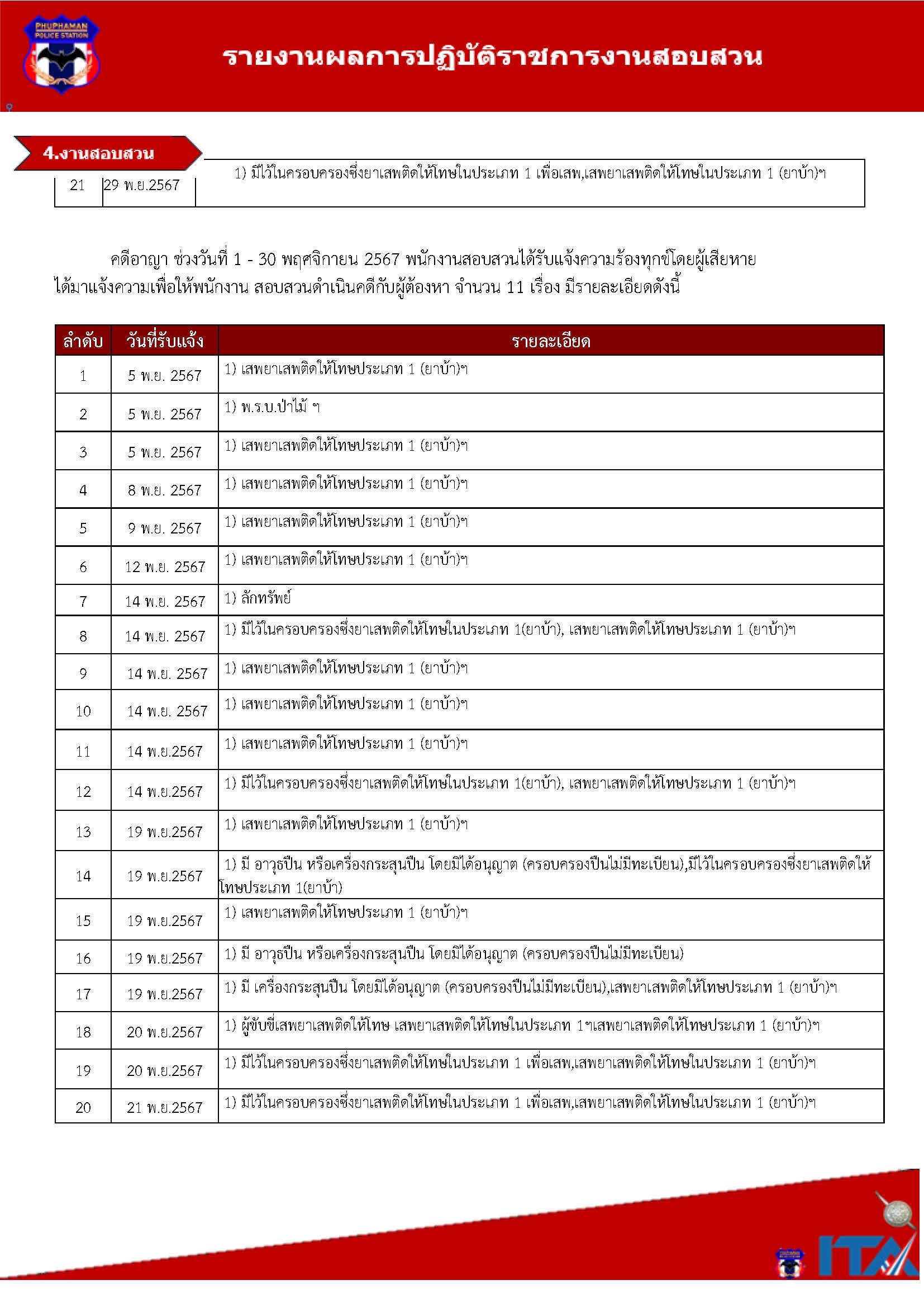 07 32 ผลการปฏิบัติงานด้านสอบสวน พ.ย. 67