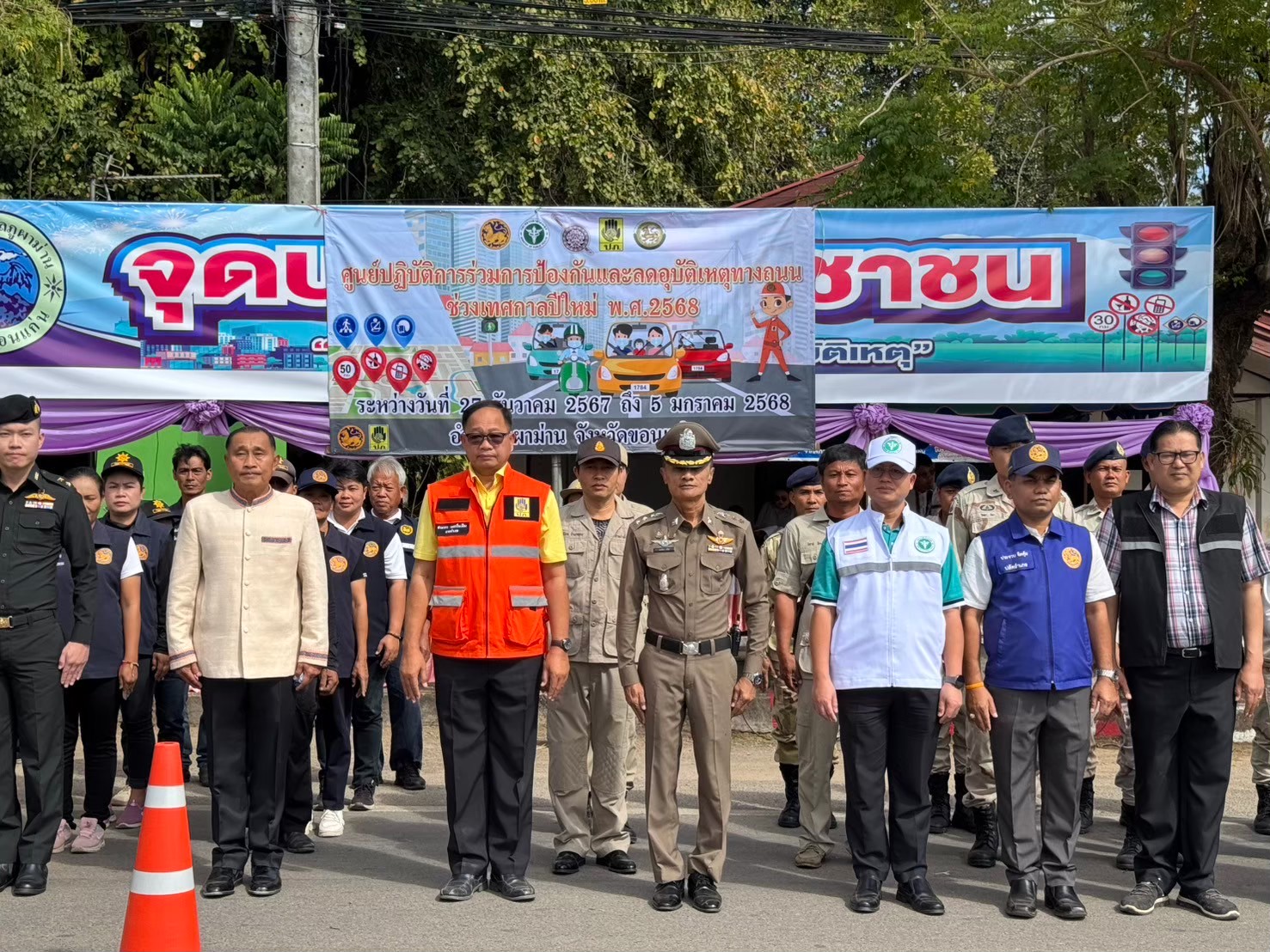 พ.ต.อ.เสกสิทธ ทวีชัย ผกก.สภ.ภูผาม่าน ร่วมต้อนรับคณะตรวจติดตามการตั้งจุดตรวจเทศกาลปีใหม่ 2568