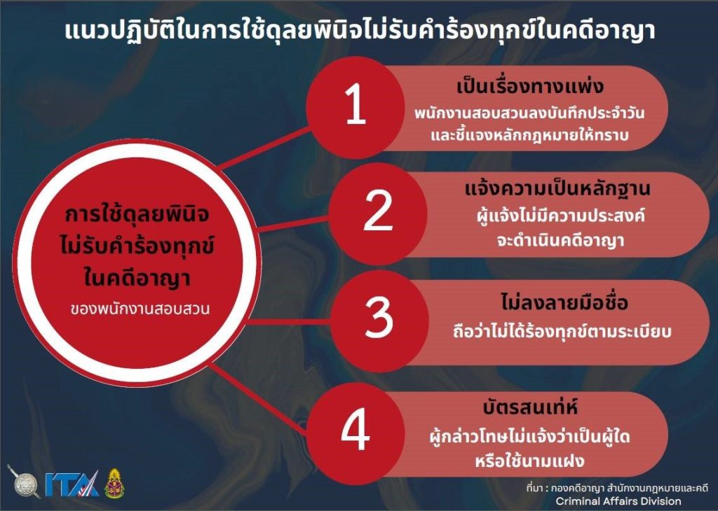 3.แนวทางปฏิบัติในการใช้ดุลยพินิจไม่รับคำร้องทุกช์ในคดีอาญา