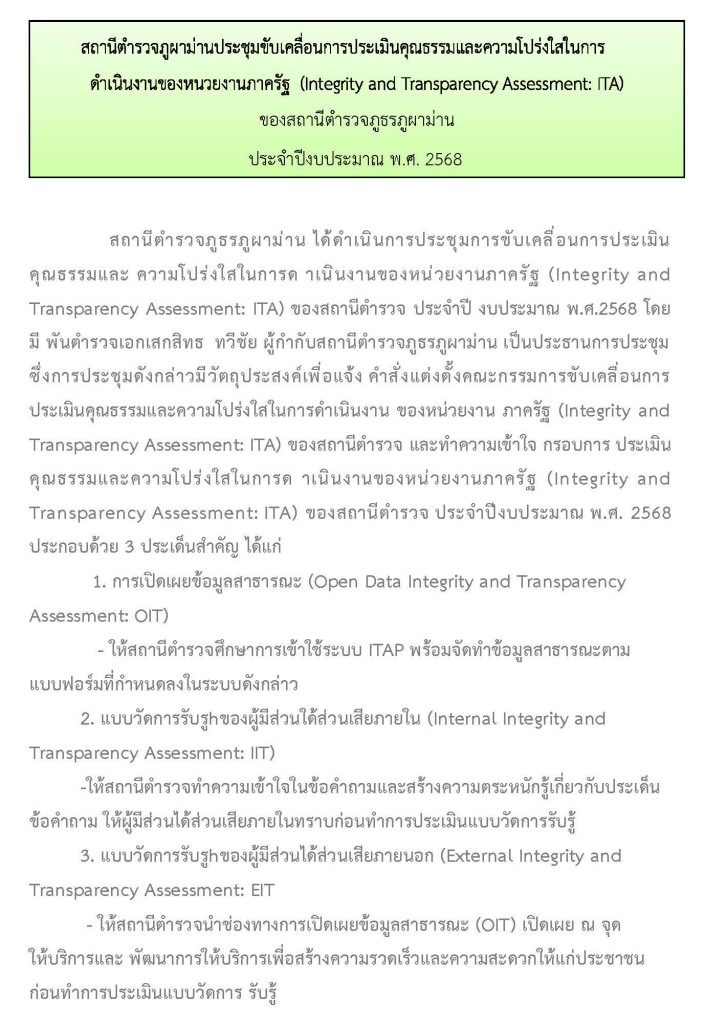 O24 มาตรการการยกระดับคุณธรรมและความโปร่งใสภายในหน่วยงาน